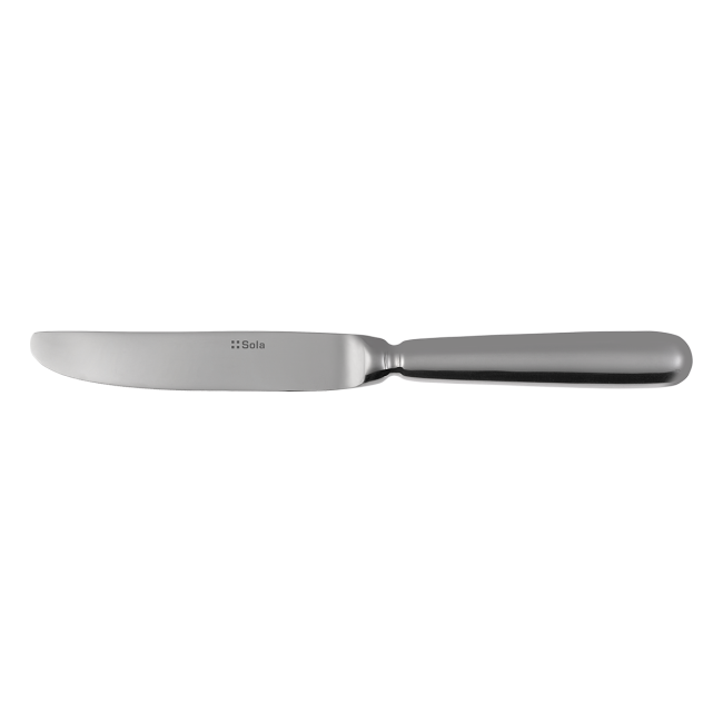 Elegantes Tafelmesser mit langer Klinge Baguette Original in polierter Ausführung, hergestellt aus hochwertigem Chromstahl 18/0. Das Tafelmesser passt zu einer klassischen so auch einer modernen Tafel und ist für gewerbliche Spülmaschinen geeignet. Auf dieses Produkt bezieht sich eine lebenslange Nachkaufgarantie.