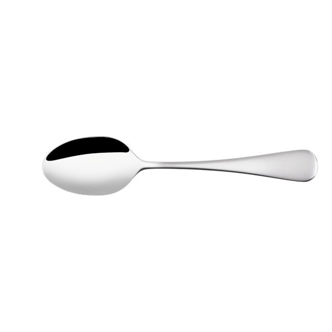Der Löffel in poliertem Finish hat ein elegant verbreitertes Griffende, das einen stabilen und bequemen Halt beim Gebrauch gewährleistet. Die hochwertige Verarbeitung und der hohe Glanz machen dieses Besteck zu einer zuverlässigen Wahl für professionelle Gastronomiebetriebe.