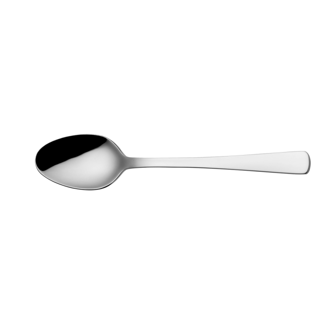 Dessertlöffel aus 18/10 Chrom-Nickel-Stahl mit polierter Oberfläche, mit eckigen Griffen für einen ausgewogenen Halt und ein modernes Erscheinungsbild. Pflegeleicht und zuverlässig für den täglichen Gebrauch.