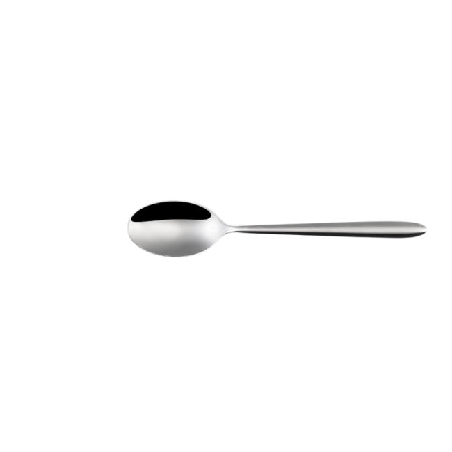 Der Dessertlöffel aus 18/10 Chrom-Nickel-Stahl mit satinierter Oberfläche weist eine sanft abgerundete Form mit einer dezenten Mittellinie für einen komfortablen Griff auf. Er ist spülmaschinengeeignet und auch für festliche Tischgedecke geeignet.