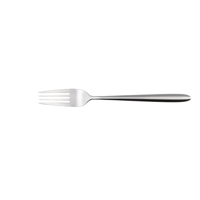 Kuchengabel aus 18/10 Chrom-Nickel-Stahl in polierter Ausführung mit sanft gerundeten Linien, die ihr ein elegantes Erscheinungsbild und einen angenehmen Griff verleihen. Dank der Monoblock-Verarbeitung ist sie robust, praktisch und ideal für den täglichen Gastronomiegebrauch geeignet.
