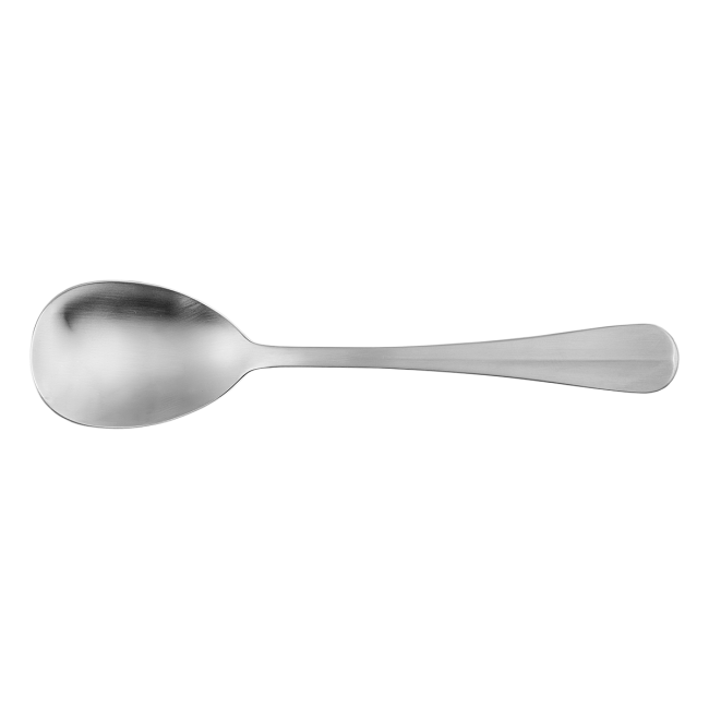 Der Löffel aus 18/10 Chrom-Nickel-Stahl mit satiniertem Finish zeichnet sich durch eine sanft abgerundete Form mit einer dezenten Mittellinie fuer einen bequemen Griff aus. Er ist spuelmaschinengeeignet und auch fuer festliche Tischgedecke geeignet.