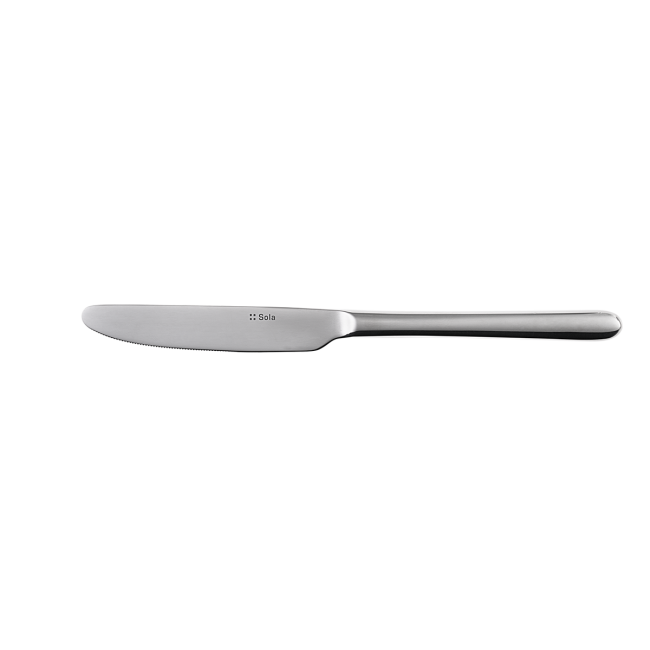 Das Messer Alpha in klassischer polierten Ausführung, hergestellt aus hochwertigem Chromstahl 18/0 mit Materialstärke von 3,5 mm. Das Vollheftmesser hat eine runde Griffendung und ist für gewerbliche Spülmaschinen geeignet. Auf dieses Produkt bezieht sich eine lebenslange Nachkaufgarantie.