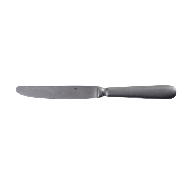 Das Tafelmesser Baguette Vintage in schwarzer Farbe, hergestellt aus hochwertigem Chromstahl 18/0. Die matte schwarze Farbe wurde dank der PVD Technologie erzielt. Wegen der farblichen Oberflächenbehandlung ist das Tafelmesser nicht spülmaschinenfest. Die Produktreihe ist nur in beschränkter Menge verfügbar. Die Ware ist auf Bestellung erhältlich.
