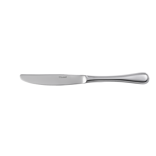 Das Tafelmesser Avalon in polierter Ausführung, hergestellt aus Chromstahl 18/0. Die runde Griffendung ist mit einer simplen Linie am Rand dekoriert. Das Tafelmesser ist für gewerbliche Spülmaschinen geeignet. Auf dieses Produkt bezieht sich eine 10 jährige Nachkaufgarantie.