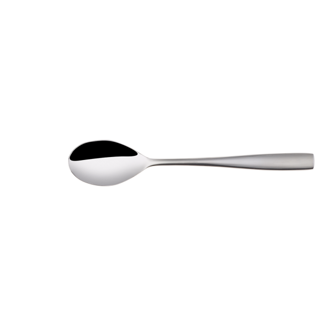 Der Dessertlöffel Avalon in polierter Ausführung, hergestellt aus Chromnickelstahl mit Materialstärke 2,5 mm. Die runde Griffendung ist mit einer simplen Linie am Rand dekoriert. Der Dessertlöffel ist für gewerbliche Spülmaschinen geeignet. Auf dieses Produkt bezieht sich eine 10 jährige Nachkaufgarantie.