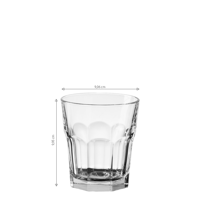 Das robuste Glas mit einem Fassungsvermögen von 350 ml eignet sich ideal zum Servieren von Wasser, Säften oder Erfrischungsgetränken. Dank der starken Wände und des stabilen Bodens ist es eine zuverlässige Wahl für den täglichen Gebrauch. Es besteht aus gehärtetem Glas mit einem verstärkten oberen Rand für eine höhere Schlagfestigkeit.