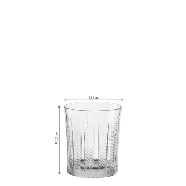 Das robuste Glas mit einem Volumen von 355 ml ist ideal zum Servieren von Wasser, Säften oder Drinks. Die feine Struktur auf der Oberfläche erhöht sowohl die Ästhetik als auch den Komfort beim Halten. Der kräftige Boden und die stabilen Wände gewährleisten eine lange Lebensdauer im täglichen Gastronomiebetrieb. Hergestellt aus gehärtetem Glas mit verstärktem oberen Rand für eine höhere Schlagfestigkeit.