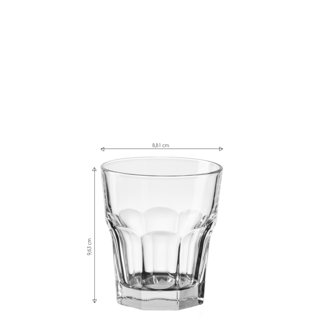 Das robuste Glas mit einem Fassungsvermögen von 290 ml eignet sich ideal zum Servieren von Wasser, Säften oder Erfrischungsgetränken. Dank der starken Wände und des stabilen Bodens ist es eine zuverlässige Wahl für den täglichen Einsatz in Restaurants, Hotels oder Kantinen. Es besteht aus gehärtetem Glas mit verstärktem oberen Rand für eine höhere Schlagfestigkeit.