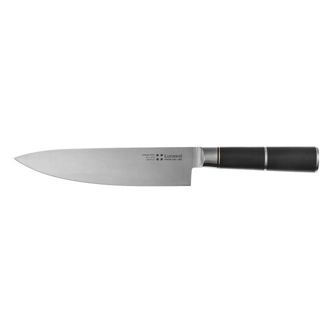 Premium Küchenmesser Lunasol mit geschmiedeter Klinge, speziell für Tranchieren geeignet. Die Klinge mit einer Länge von 20 cm ist aus deutschem Stahl hergestellt. Das Messer ist für gewerbliche Spülmaschinen geeignet.