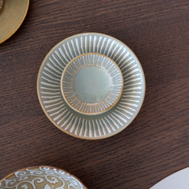 Flacher Teller mit Reliefdekor im Inneren und glatter Glasur auf der Aussenseite ist fuer den professionellen Service geeignet. Die handwerkliche Verarbeitung verleiht jedem Stueck einen originellen Charakter, daher koennen sich einzelne Stuecke leicht in Farbton und Dekordetails unterscheiden.