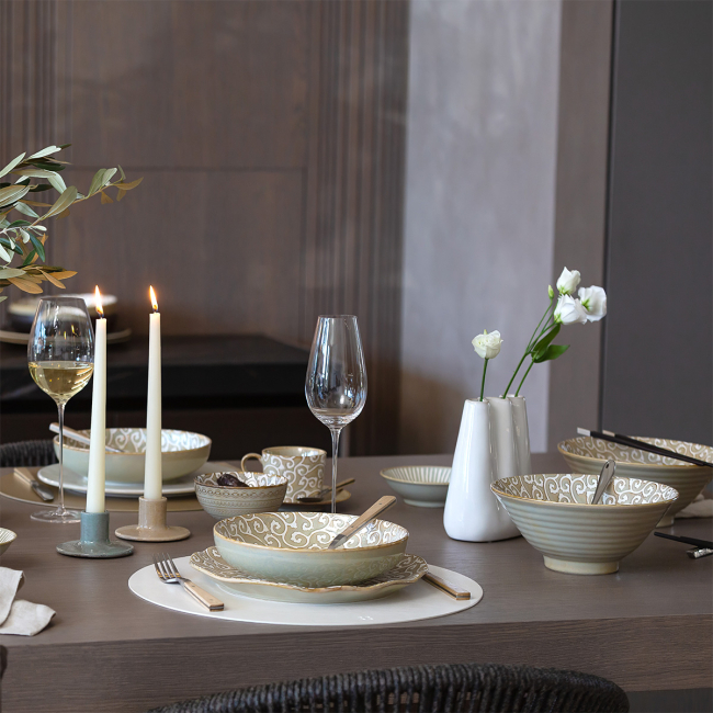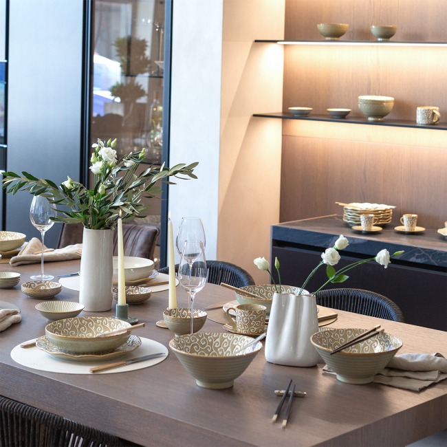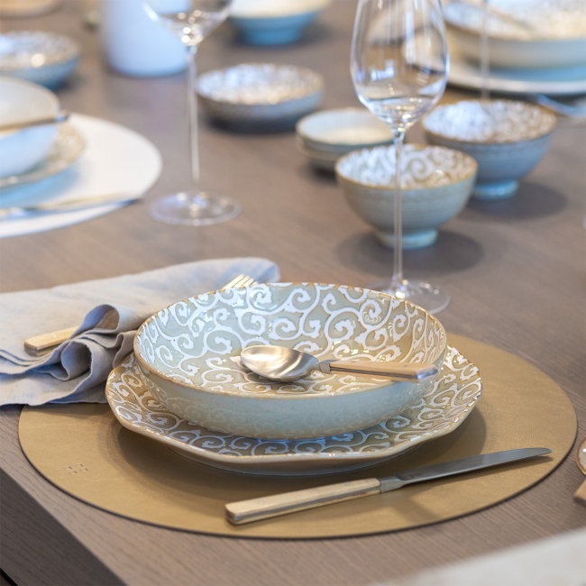 Die Schale Levante Line verbindet handwerklichen Charakter mit orientalischer Inspiration. Reliefartige Linien und eine glatte Glasur unterstützen eine optisch ansprechende Präsentation der Speisen sowie die einfache Kombination mit der Kollektion Levante Pearl. Jedes Stück ist ein Unikat, daher kann es leicht in Farbton und Dekordetails variieren.
