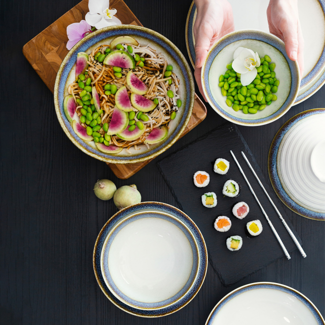 Die L-Schale Gaya Atelier Silom Le Wave eignet sich perfekt für die stilvolle Präsentation von Ramen und anderen asiatischen Spezialitäten. Ihre grosszügige Form bietet ausreichend Platz für ein komfortables Servieren, während die sanften Farbverläufe und die feine Textur den Speisen eine visuelle Tiefe verleihen. Das zeitlose Design und die natürliche...