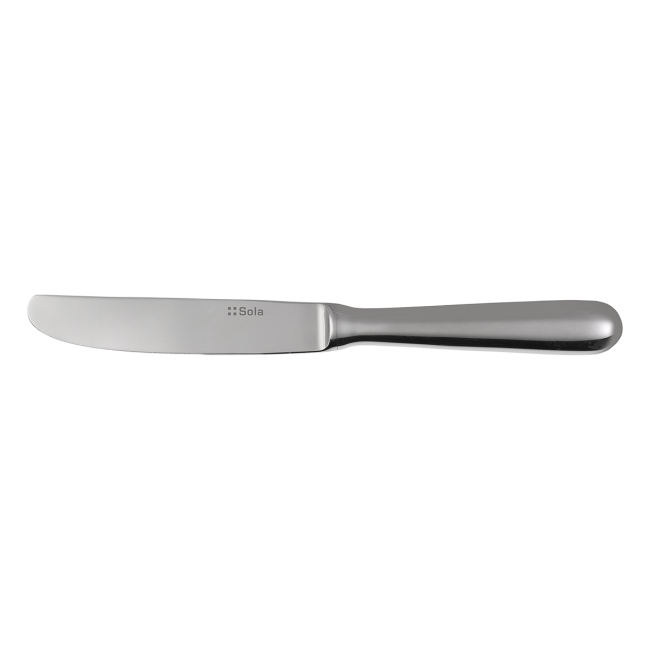 Elegant dessert knife with groove design on Baguette Original handle in shiny design is made of 18/0 chrome steel for blade resistance. It suits perfectly classic as well as modern placemats and is also suitable for industrial dishwashers. Lifetime guarantee of purchase.