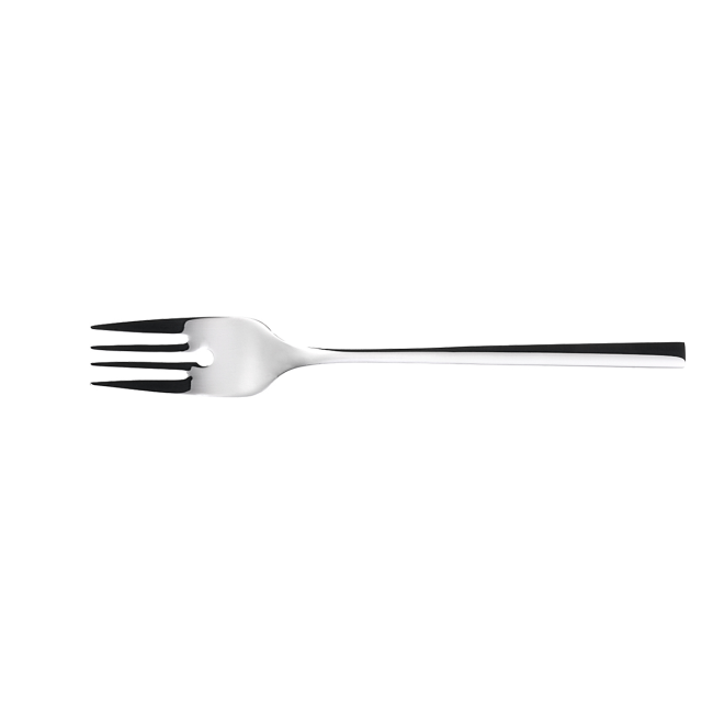 Cake fork Alpha with classic mirror finish, made of high quality chrome nickel steel 18/10 with the thickness of material 2,5 mm. The round ended cake fork is suitable for industrial dishwashers. With this product you get a lifetime guarantee of re-purchasing.