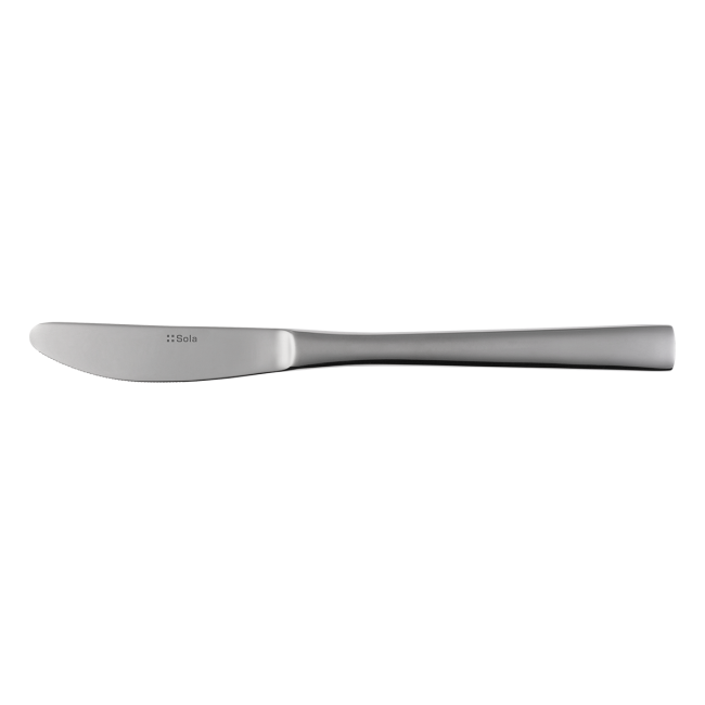 Table knife Alpha with classic mirror finish, made of chrome steel 18/0. The round ended monoblock table knife is suitable for industrial dishwashers. With this product you get a lifetime guarantee of re-purchasing.
