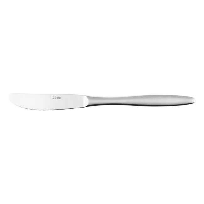 Table knife Avalon with mirror look is made of high quality chrome steel 18/0. The round ended knife handle is decorated with a sipmle line on the round. This product is suitable for industrial dishwashers. 10 years guarantee of re-purchasing.
