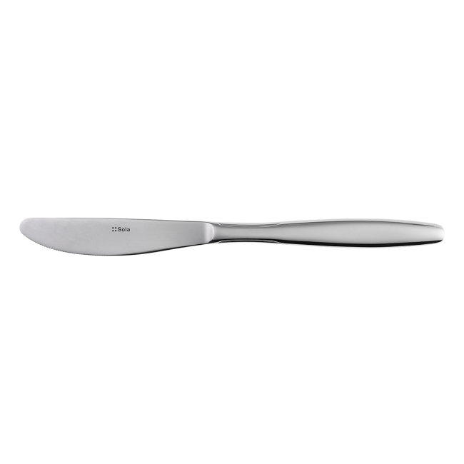 Table knife Alpha with classic mirror finish, made of chrome steel 18/0. The round ended monoblock table knife is suitable for industrial dishwashers. With this product you get a lifetime guarantee of re-purchasing.