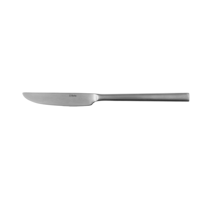Table knife Alpha with classic mirror finish, made of chrome steel 18/0. The round ended monoblock table knife is suitable for industrial dishwashers. With this product you get a lifetime guarantee of re-purchasing.