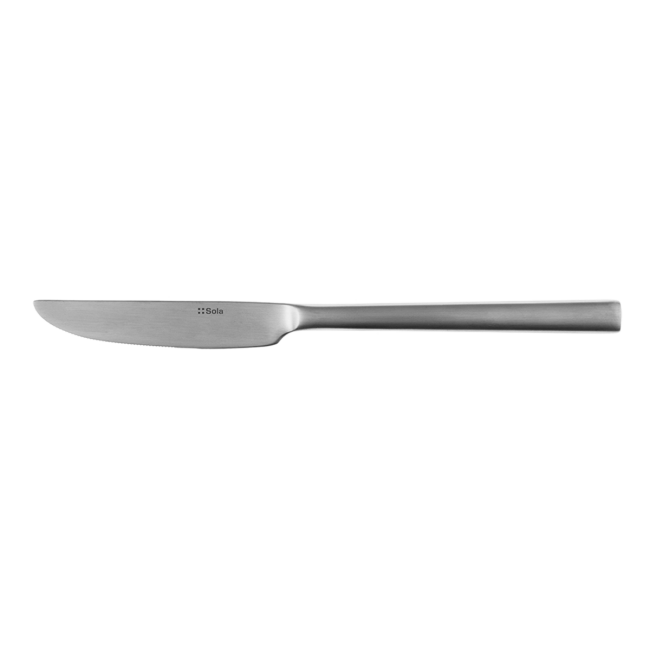 Table knife Alpha with classic mirror finish, made of chrome steel 18/0. The round ended monoblock table knife is suitable for industrial dishwashers. With this product you get a lifetime guarantee of re-purchasing.