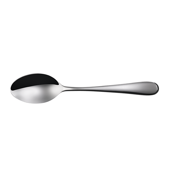 The dessert spoon from the Premium line, made of 18/10 chrome-nickel steel, offers an elegant shape, a high-gloss all-mirror finish, and a durable monoblock design. It is ideal for modern gastronomy settings and is dishwasher safe