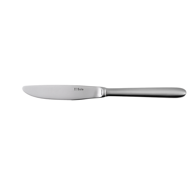 Table knife Alpha with classic mirror finish, made of chrome steel 18/0. The round ended monoblock table knife is suitable for industrial dishwashers. With this product you get a lifetime guarantee of re-purchasing.