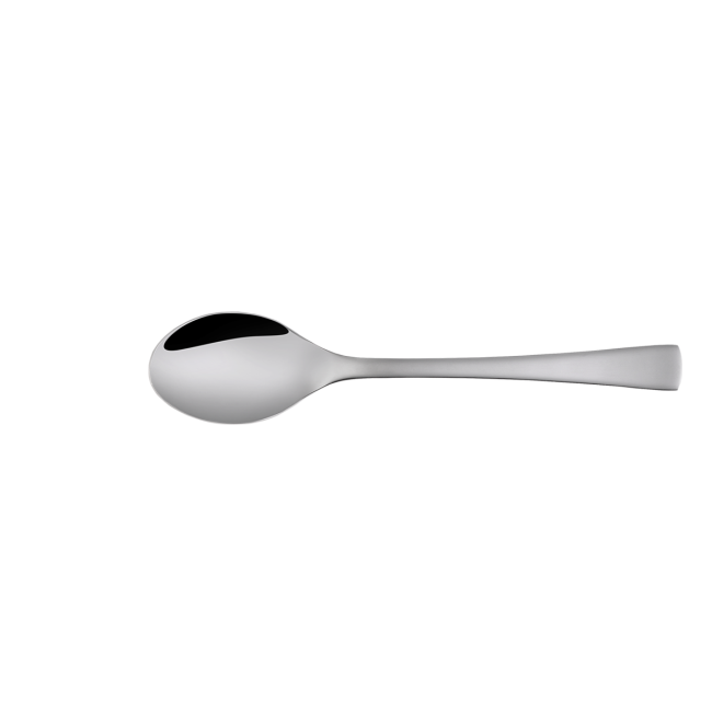 The coffee spoon made of 18/10 chrome-nickel steel features an elegant shape with a slightly widened end for a more comfortable grip. Its reliable durability, high all-mirror finish, and easy maintenance make it ideal for everyday use in gastronomy.