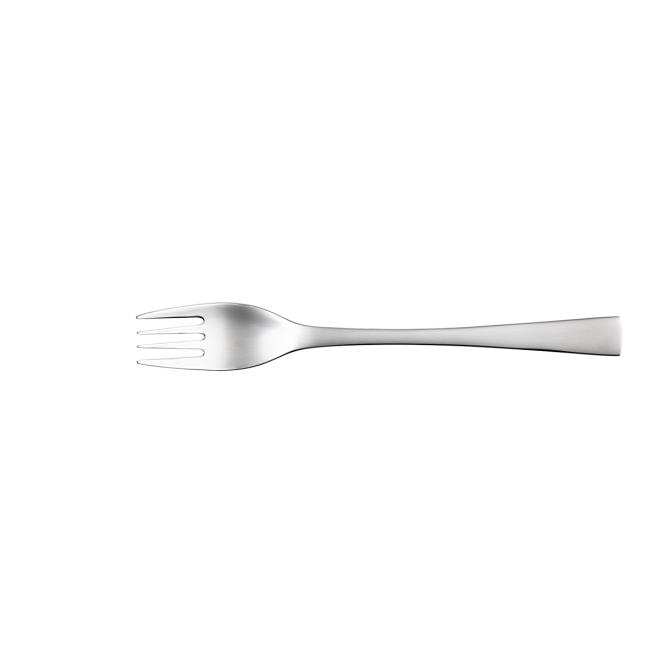 The cake fork made of 18/10 chrome-nickel steel features an elegant shape with a slightly widened end for a more comfortable grip. Its reliable durability, high-gloss all-mirror finish, and easy maintenance make it ideal for everyday use in gastronomy settings