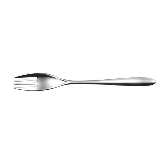 Table fork Valencia in mirror look is made of high quality chrome nickel steel 18/10 with 6,4 mm material thickness. This cutlery line has round ended handles and is suitable for industrial dishwashers. Lifetime guarantee of re-purchasing.