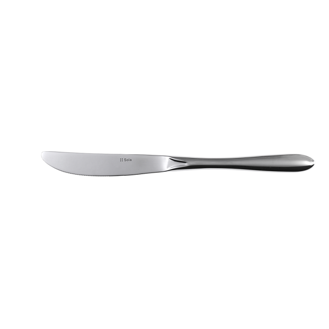 Dessert knife Valencia in mirror look is made of high quality chrome steel 18/0. This cutlery line has round ended handles and is suitable for industrial dishwashers. Lifetime guarantee of re-purchasing.