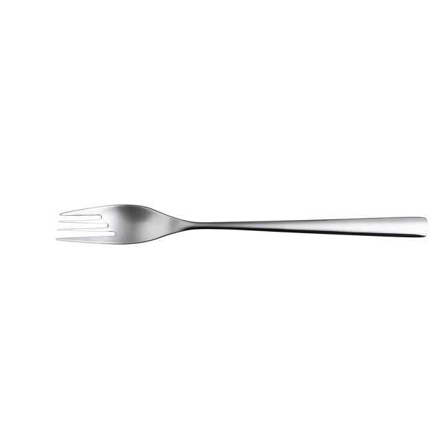 Cake fork Alpha with classic mirror finish, made of high quality chrome nickel steel 18/10 with the thickness of material 2,5 mm. The round ended cake fork is suitable for industrial dishwashers. With this product you get a lifetime guarantee of re-purchasing.