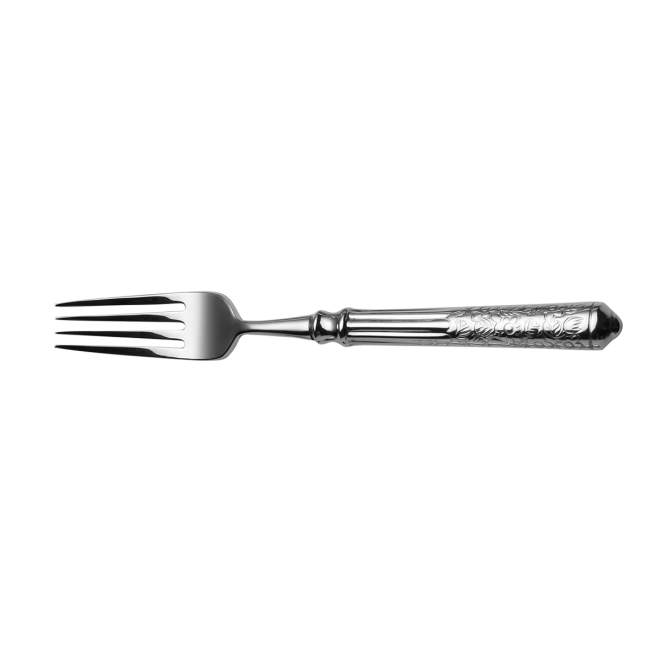 Table fork with hollow handle San Remo of the Platinum line cutlery range is made of high quality chrome nickel steel 18/10. This high class cutlery range has a floral corded decor. San Remo cutlery line is suitable for industrial dishwashers. 10 years guarantee of re-purchasing.