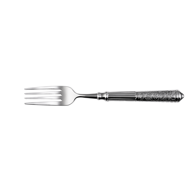 Dessert fork with hollow handle San Remo of the Platinum line cutlery range is made of high quality chrome nickel steel 18/10. This high class cutlery range has a floral corded decor. San Remo cutlery line is suitable for industrial dishwashers. 10 years guarantee of re-purchasing.