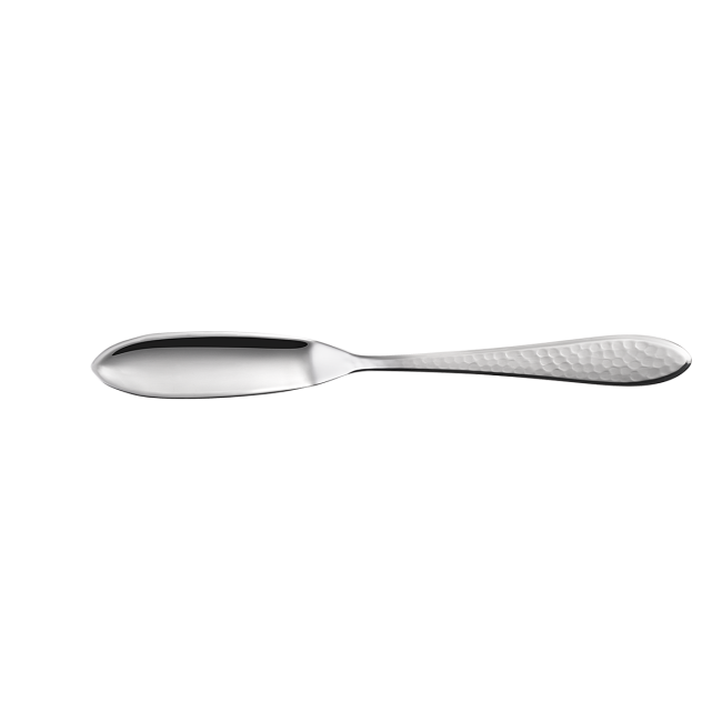 Fish knife with hollow handle Queen with hollow handle is made of high quality chrome nickel steel 18/10. Classic shape is completed with elegant hammering on the handle. This cutlery line is suitable for industrial dishwashers. 10 years guarantee of re-purchasing.