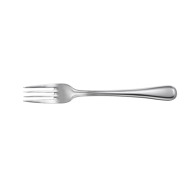 Dessert fork Avalon with mirror look is made of high quality chrome nickel steel 18/10 with 2,5 mm material thickness. The round ended fork handle is decorated with a sipmle line on the round. This product is suitable for industrial dishwashers. 10 years guarantee of re-purchasing.