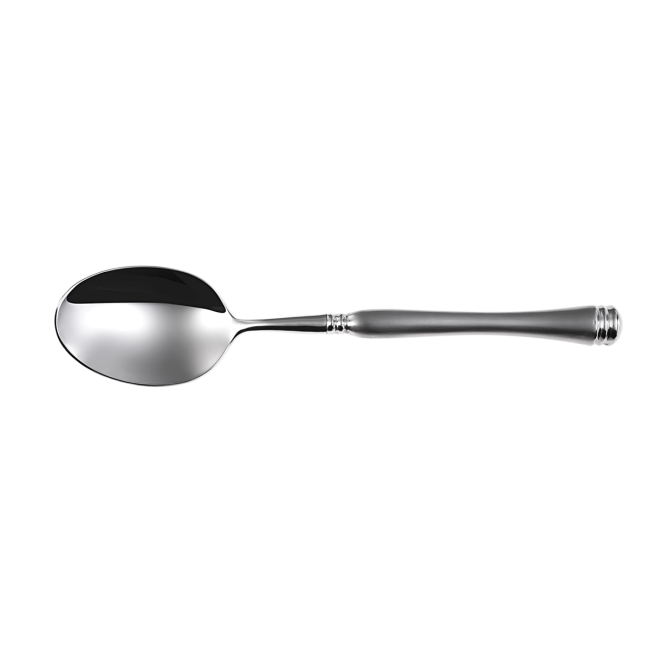 Table spoon with hollow handle San Remo of the Platinum line cutlery range is made of high quality chrome nickel steel 18/10. This high class cutlery range has a floral corded decor. San Remo cutlery line is suitable for industrial dishwashers. 10 years guarantee of re-purchasing.