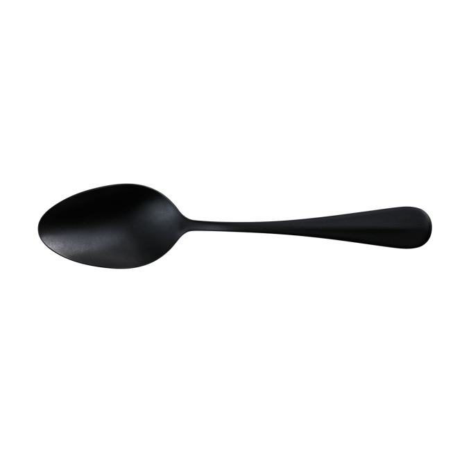Table spoon Baguette Vintage in black colour is made of high quality chrome nickel steel 18/10 with 3 mm material thickness. The matt black surface is made by PVD coating technology. Because of the coloured coating is this product line not suitable for dishwasher use. This product is not a stock items, items available on demand.