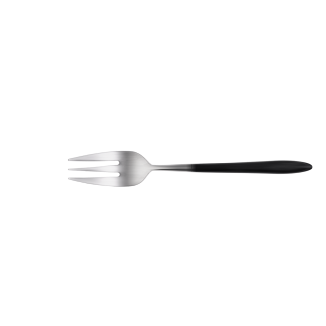 Cake fork Baguette Vintage in black colour is made of high quality chrome nickel steel 18/10 with 2,5 mm material thickness. The matt black surface is made by PVD coating technology. Because of the coloured coating is this product line not suitable for dishwasher use. This product is not a stock items, items available on demand.