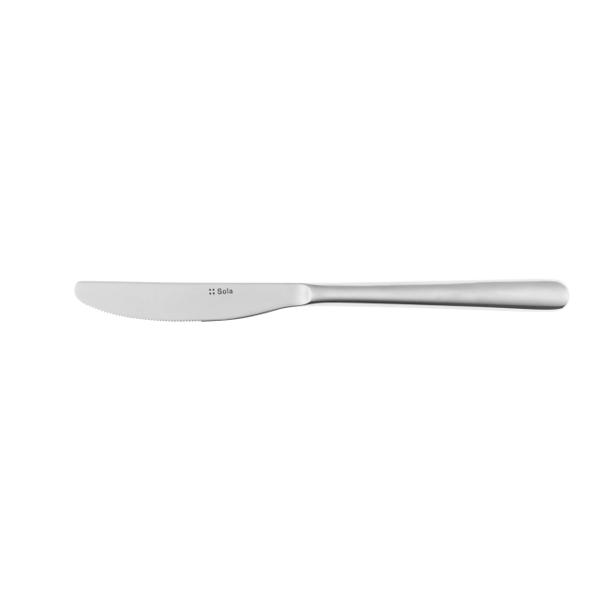 Dessert knife Valencia in mirror look is made of high quality chrome steel 18/0. This cutlery line has round ended handles and is suitable for industrial dishwashers. Lifetime guarantee of re-purchasing.