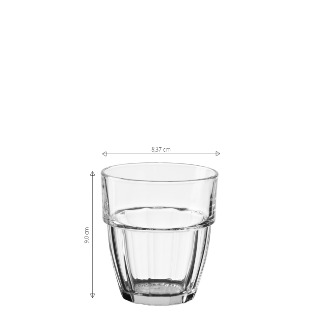 The durable 265 ml glass features a gently rounded shape for a comfortable grip. The sturdy, stable base ensures safe everyday use. It is dishwasher-safe. It is made of tempered glass with a reinforced rim for increased impact resistance.