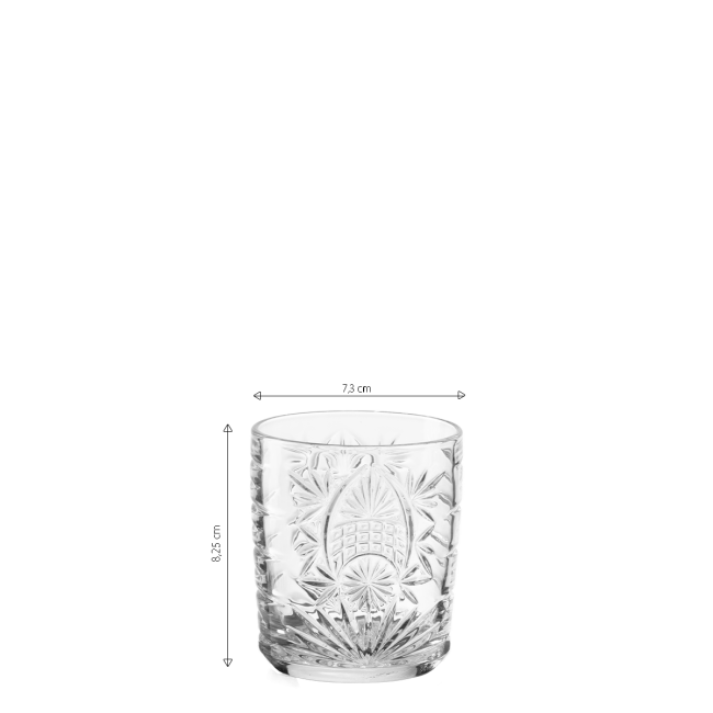 The 230 ml glass features a distinctive embossed pattern that highlights its elegant appearance. Its straight shape and sturdy base ensure stable and practical use in food-service establishments. It is dishwasher-safe. It is made of tempered glass with a reinforced rim for increased impact resistance.