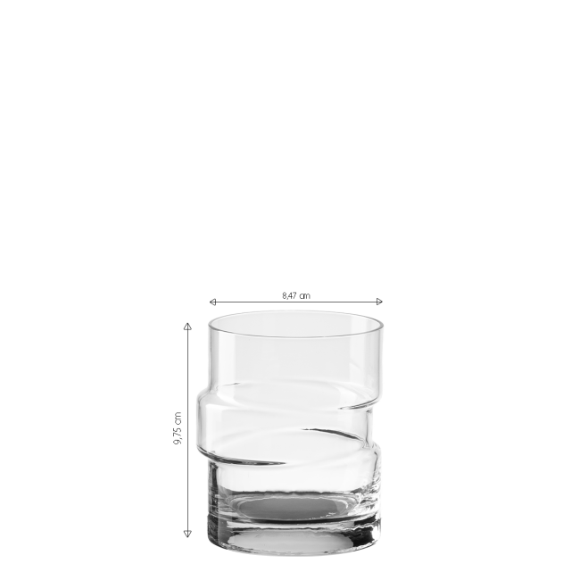 The 355 ml glass stands out with its asymmetrical shape, giving it a modern and distinctive appearance. Its stable, solid base ensures reliable use in food-service environments, and the glass is dishwasher-safe. Made of tempered glass with a reinforced upper rim for increased impact resistance.