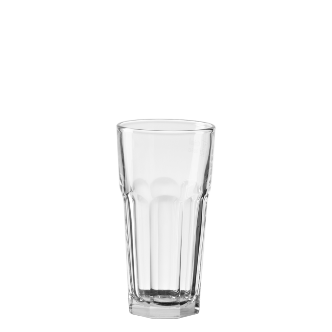 The tall 285 ml glass is ideal for serving water, lemonades, or non-alcoholic beverages. Thanks to its sturdy walls and robust base, it offers reliable durability for everyday use in restaurants, cafés, or hotel operations. Made from tempered glass with a reinforced rim for increased impact resistance.