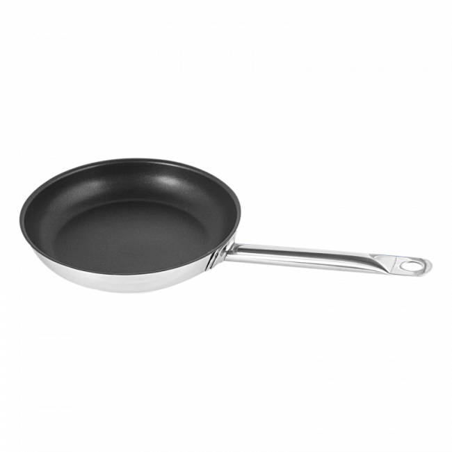 The pan from the Master Chef line is made of 18/10 chromium-nickel stainless steel. It has a diameter of 240 mm and a depth of 50 mm. The pan is heat resistant up to 260 °C. Thanks to the Ilag non-stick coating, food does not stick or burn. It has a ferromagnetic base and is therefore suitable for all types of cooktops, including induction. The product is suitable for use in commercial dishwashers.