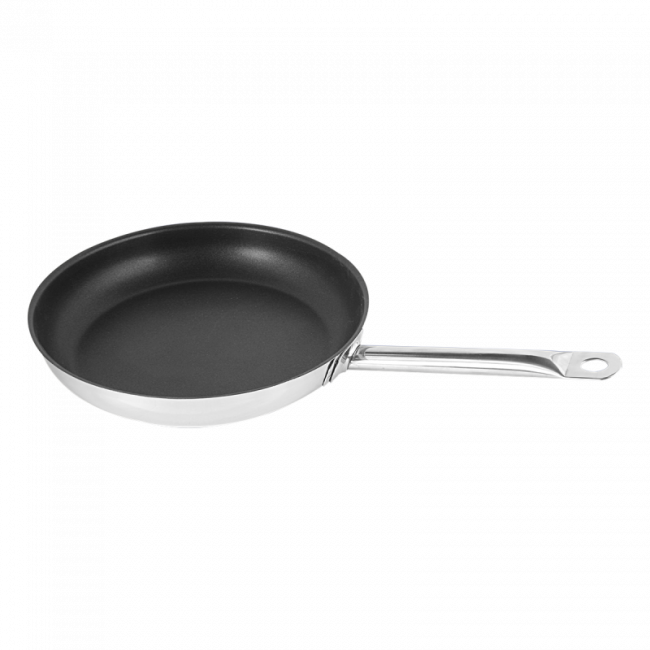 The pan from the Master Chef line is made of 18/10 chromium-nickel stainless steel. It has a diameter of 300 mm and a depth of 60 mm. The pan is heat resistant up to 260 °C. Thanks to the Ilag non-stick coating, food does not stick or burn. It has a ferromagnetic base and is therefore suitable for all types of cooktops, including induction. The product is suitable for use in commercial dishwashers.