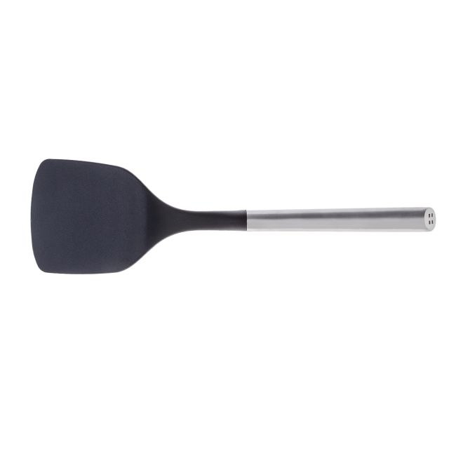Spachtel mit Schlitz, hergestellt aus massivem Buchenholz. Dieses Material zeichnet sich durch eine hohe Widerstandsfähigkeit aus. Diese Produkte eignen sich hervorragend für Geschirr mit Antihaft-Oberfläche. Die Holzspachteln sind nicht für gewerbliche Spülmaschinen geeignet.