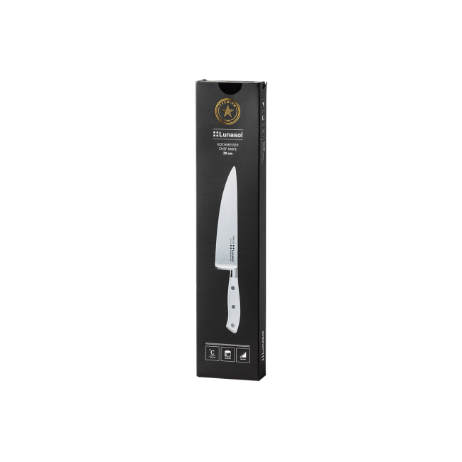 Premium knife Lunasol with forged blade is designed for cutting. The knife blade is made of German steel and thanks to the longer blade (20 cm) it is especially suitable for cutting cooked and roasted meat. The knife is suitable for industrial dishwasher.