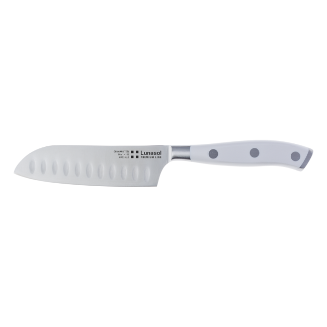 Premium Lunasol Santoku knife with forged blade is universal The blade of the knife is made of German steel (17.8 cm). The knife is suitable for industrial dishwasher.